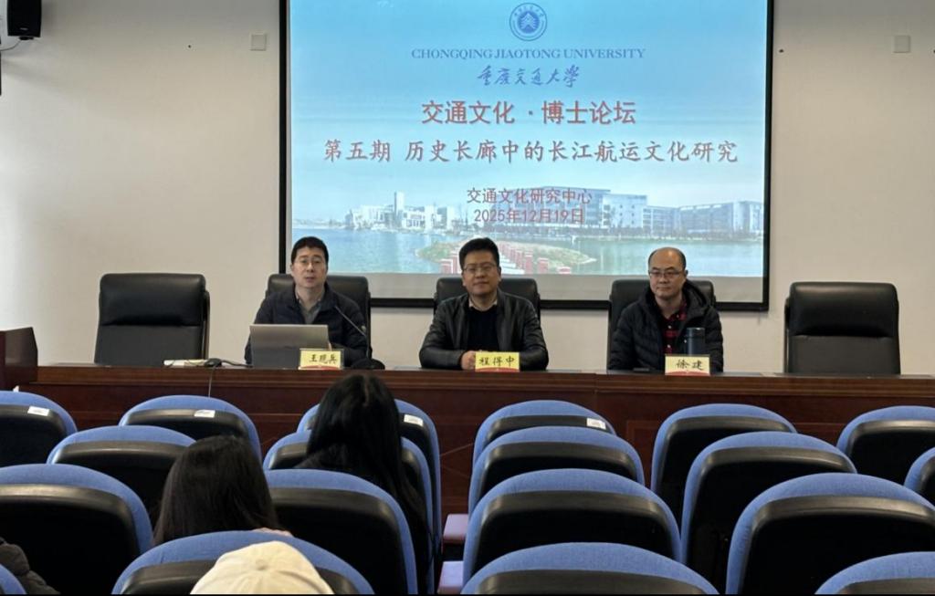 12月19日,重庆市人文社科重点研究基地“交通文化研究中心”联合重庆市社会科学普及基地在科学城校区致远楼519会议室举办了第五期“交通文化·博士论坛”。本期论坛以“历史长廊中的长江航运文化研究”为核心专题,特邀马克思主义学院青年教师程得中博士、徐建博士担任主讲嘉宾。论坛由交通文化研究中心综合办主任王现兵老师主持。交通文化研究中心研究人员代表及马克思主义理论研究生共计80余人参会,共同探寻长江航运文化的历史底蕴与时代价值。